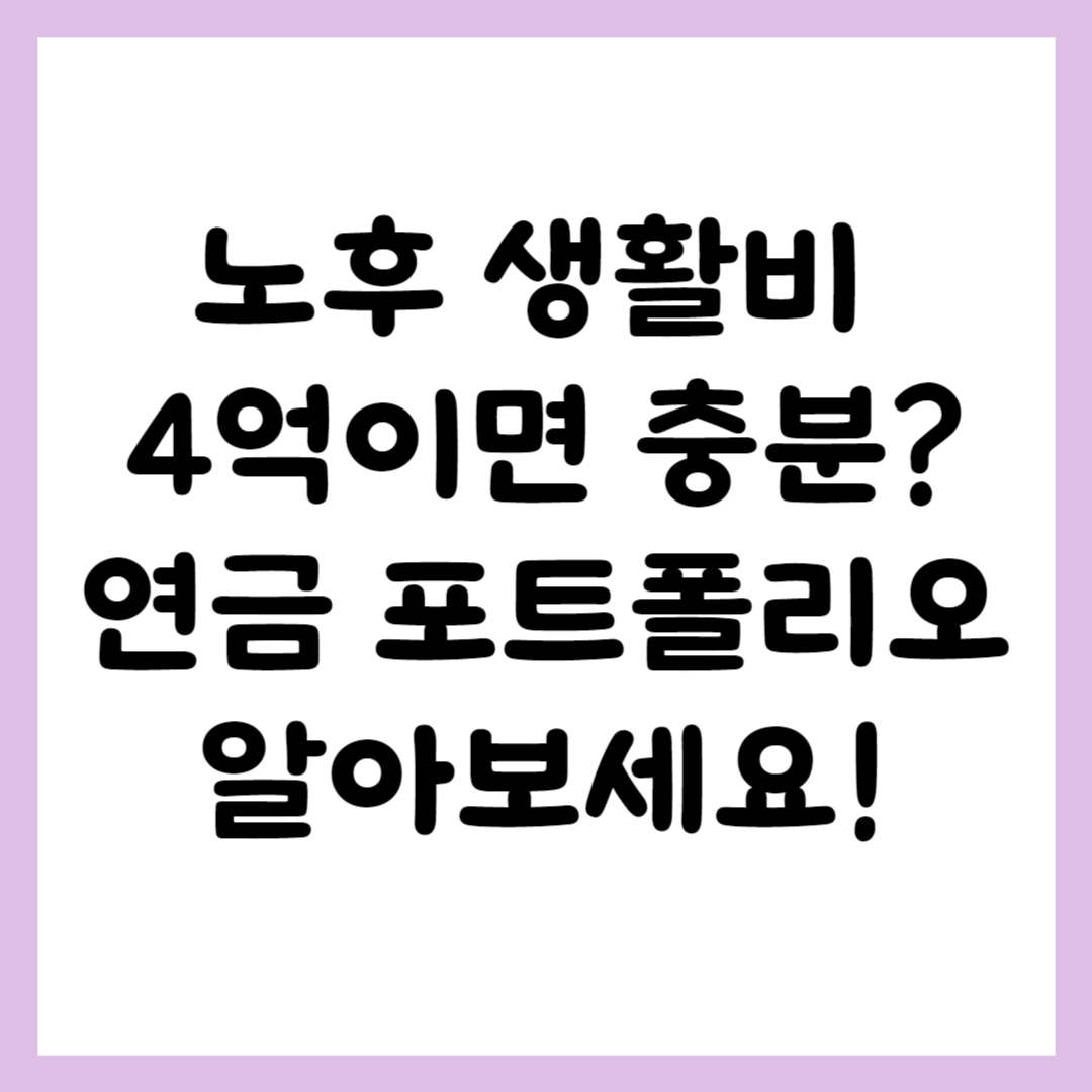이번 글에서는 노후생활비 4억을 준비하기 위한 연금 포트폴리오의 구체적인 종목 4가지를 알아보고자 합니다.
