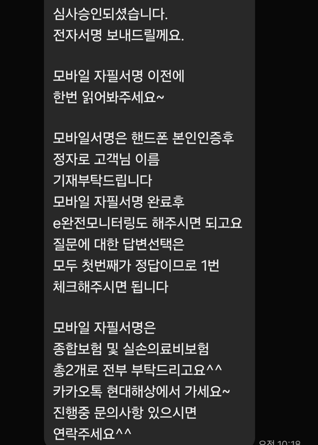심사는 30분 이내로 온라인으로 가능하며, 카톡으로 전자서명 진행하면 가입 끝입니다.